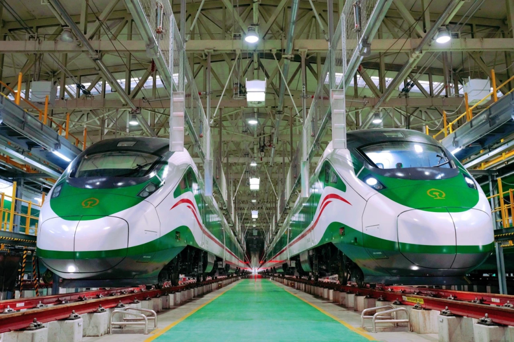 新车型首迎春运,同样离不开后勤保障的支持。走进国铁济南局济南动集所,调度中心宽阔明亮,现场监控屏实时显示着各种数据,列车出检修及入库情况在屏幕上一目了然。在动集车检修基地,地勤机械师正在仔细检查车下的各个部件。