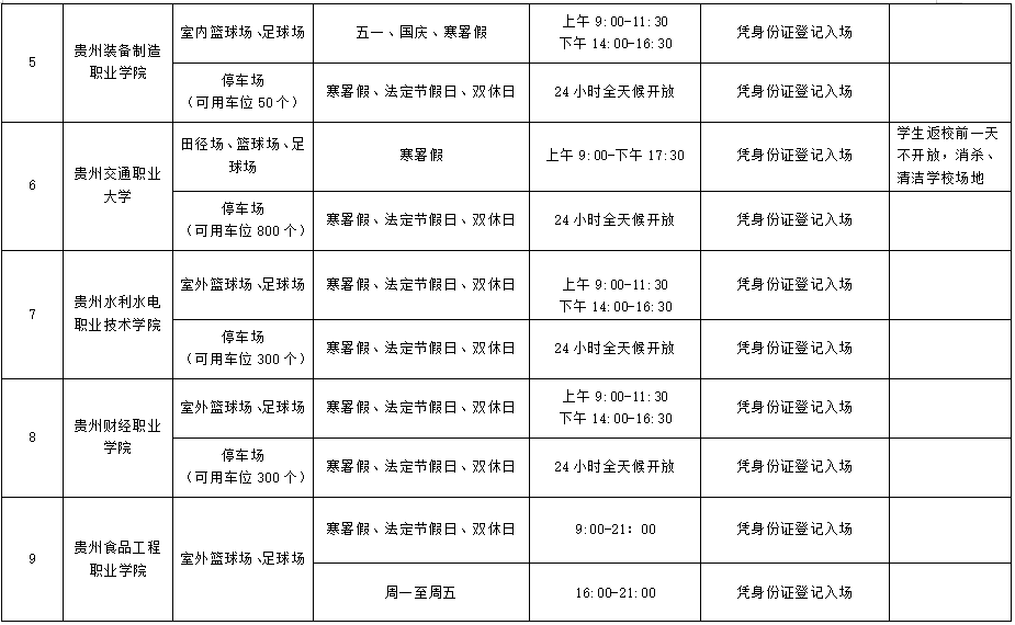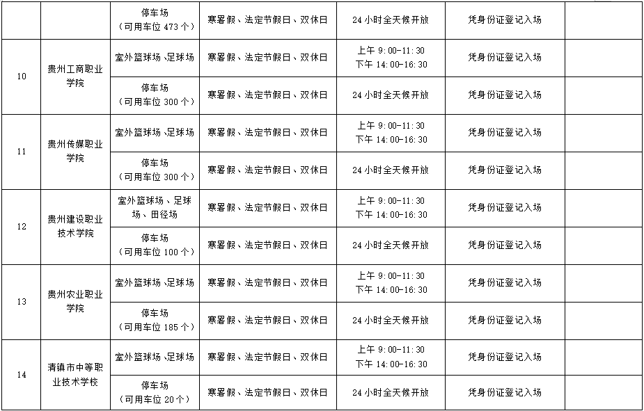 附件:贵州(清镇)职教城院校体育场馆、停车场开放院校清单