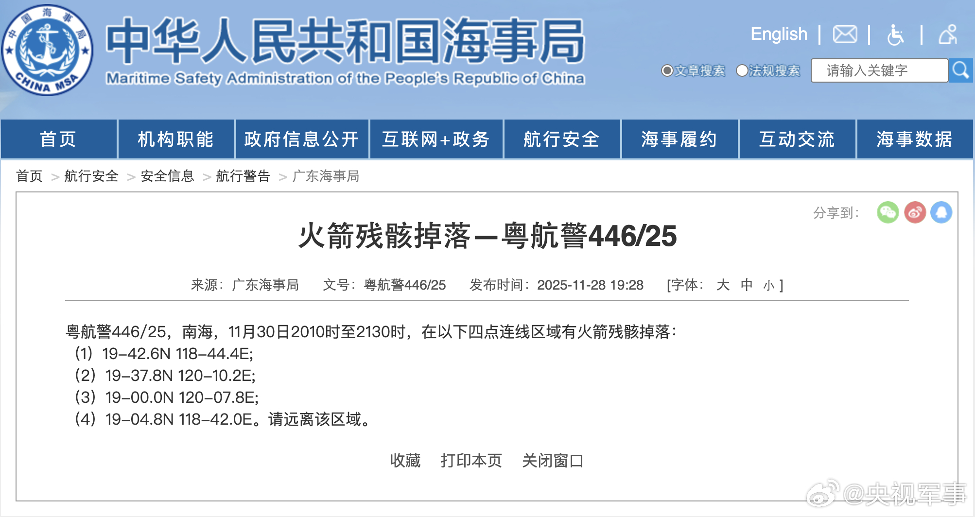 中国海事局网站 | 2025-11-30 10:32