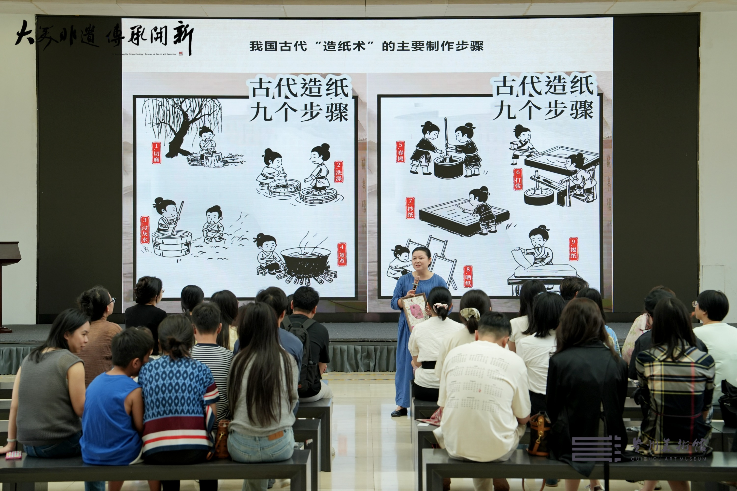 在我国古代,“造纸”需经历捣浆、抄造、晾晒等十多道复杂程序。而为什么造纸术唯独诞生于中国呢?陈梅老师指出,这与中国古代两道程序密切相关——丝织工艺中的“漂丝”与“漂絮”。正是在处理丝纤维过程中积累的经验,让人们发现了纤维悬浮成型的原理,从而逐渐发展出以植物纤维为原料的造纸技术。这一古老智慧的传承与迭代,才让纸的文明得以延续。