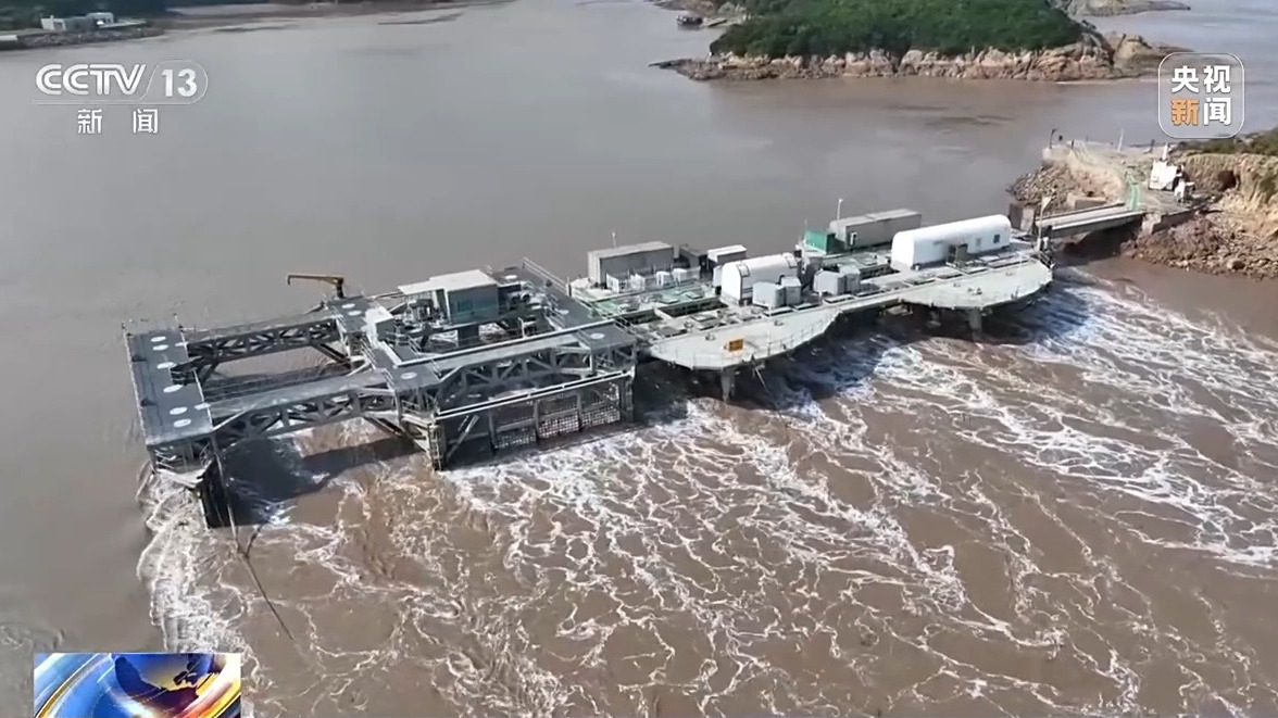 记者在浙江舟山海域看到,我国自主研发制造的首台LHD兆瓦级潮流能“奋进号”发电机组,通过平台式模块化设计,有效提高了潮流利用率和稳定性,率先实现兆瓦级大功率稳定并网发电。目前,LHD海洋潮流能发电站已连续并网运行超8年。与国际主流技术相比,LHD海洋潮流能发电项目采用了“平台式+模块化”的技术路径,好比把风机倒转垂直插入总成平台的一个个“工位”里。同时增加了防护网,既能起到导流、整流的作用,还能防止海洋垃圾对叶片的损害,有效破解了海上安装、运行维护、垃圾防护、电力输送等关键问题。
