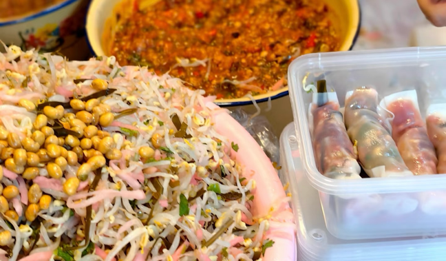 安顺裹卷:薄如蝉翼的米皮,包裹酸萝卜、豆芽、秘制辣椒酱等,香辣爽口,是必尝的“入门级”美食。