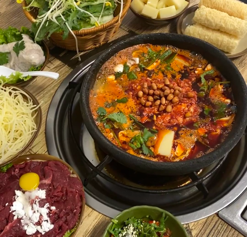 关岭牛火锅:贵州黄牛之首,肉质鲜嫩。在清汤锅中涮烫数秒,最能体现其本真的醇香。