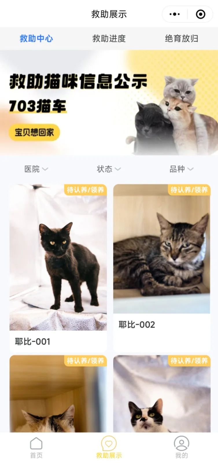 此外,多家参与此次救助行动的宠物医院也承诺,愿意为代(领)养家庭免费提供猫咪的饲养指导、疾病解答以及后续的绝育服务,并就今后饲养过程中的就医需求提供不同的折扣活动。耶比动物医院总负责人邹红梅也透露,“胖瓜养宠”小程序不会止步于对此次“703猫咪”的救助,她还希望能够不断完善相关功能,整合更多的力量来关注流浪动物救助以及帮助到更多喜欢小动物的人。她表示:“小程序后续会增加救助站及个人发布领养信息的版本,也会邀请更多医院来做流浪动物福利,还有厂家愿意提供免费疫苗,目前各方面资源都正在梳理对接中。”