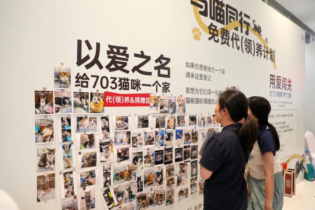 志愿者们通过在商场举办公益活动的方式,积极帮助猫咪寻找代(领)养。在8月9日首次开展的“与喵同行”猫咪免费代(领)养活动上,就有18只猫咪成功找到了代(领)养家庭。看到这么多猫咪又能重归幸福,志愿者负责人谌瑀表示非常开心,她说:“能让猫咪回归家庭是最好的事情,如果有的猫咪一直没有被领养,后续我们可能会弄一个‘703猫咪’安置点,一直到它们被成功领养,让它们平平安安地度过后面的‘猫生’。”