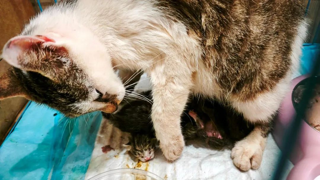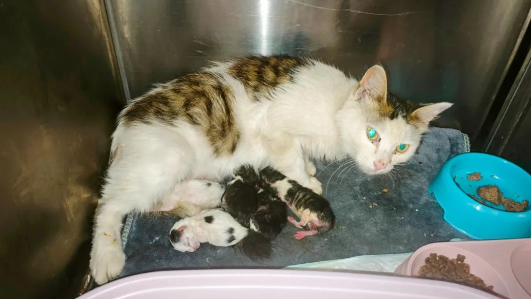 吉祥宠物医院分流的猫咪在获救后第二天生下4只小猫