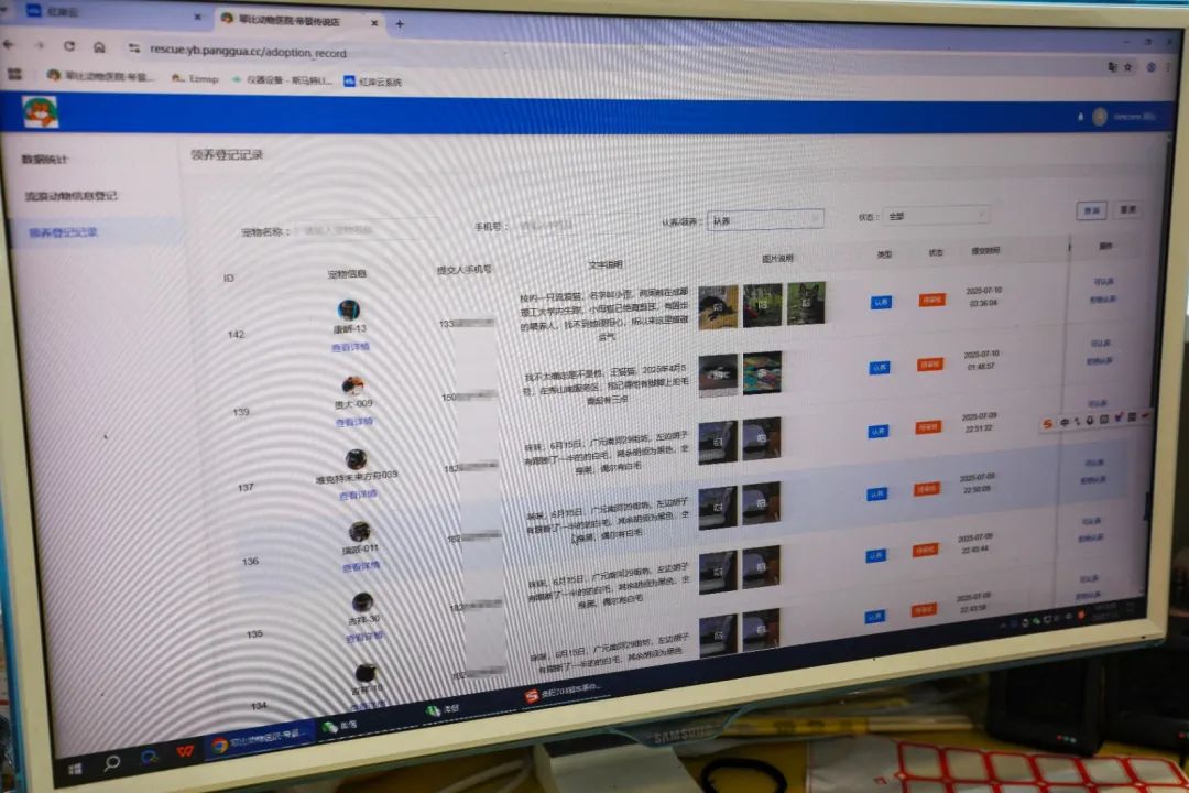 耶比动物医院后台显示丢猫主人提交的认领信息
