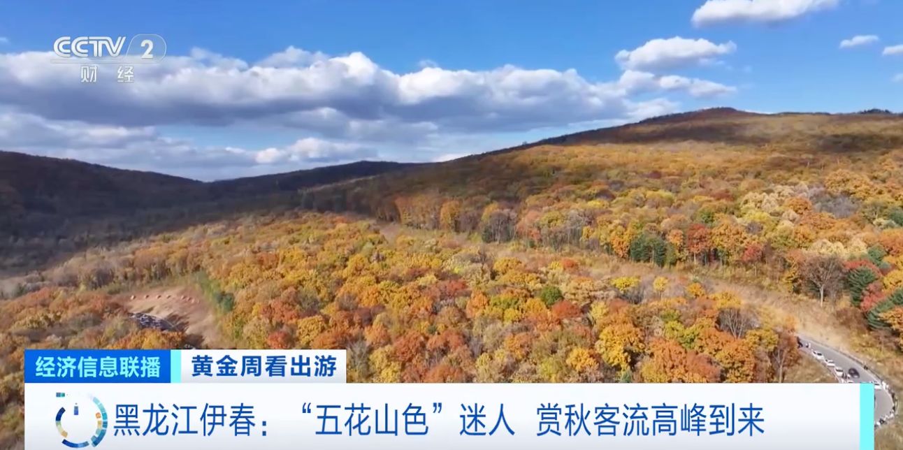 国庆假期黑龙江伊春迎赏秋客流高峰,“五花山色”盘山路成热门打卡地
