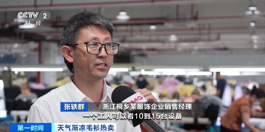 在另一家服装企业,记者看到生产车间里样衣堆积,工人们忙着质检、称重,设计师团队则在电脑前加紧创作新款毛衫。企业负责人沈卫国告诉记者,今年前九个月,企业销售额已经超过1亿元,同比增长12%,目前订单已经排到年底。