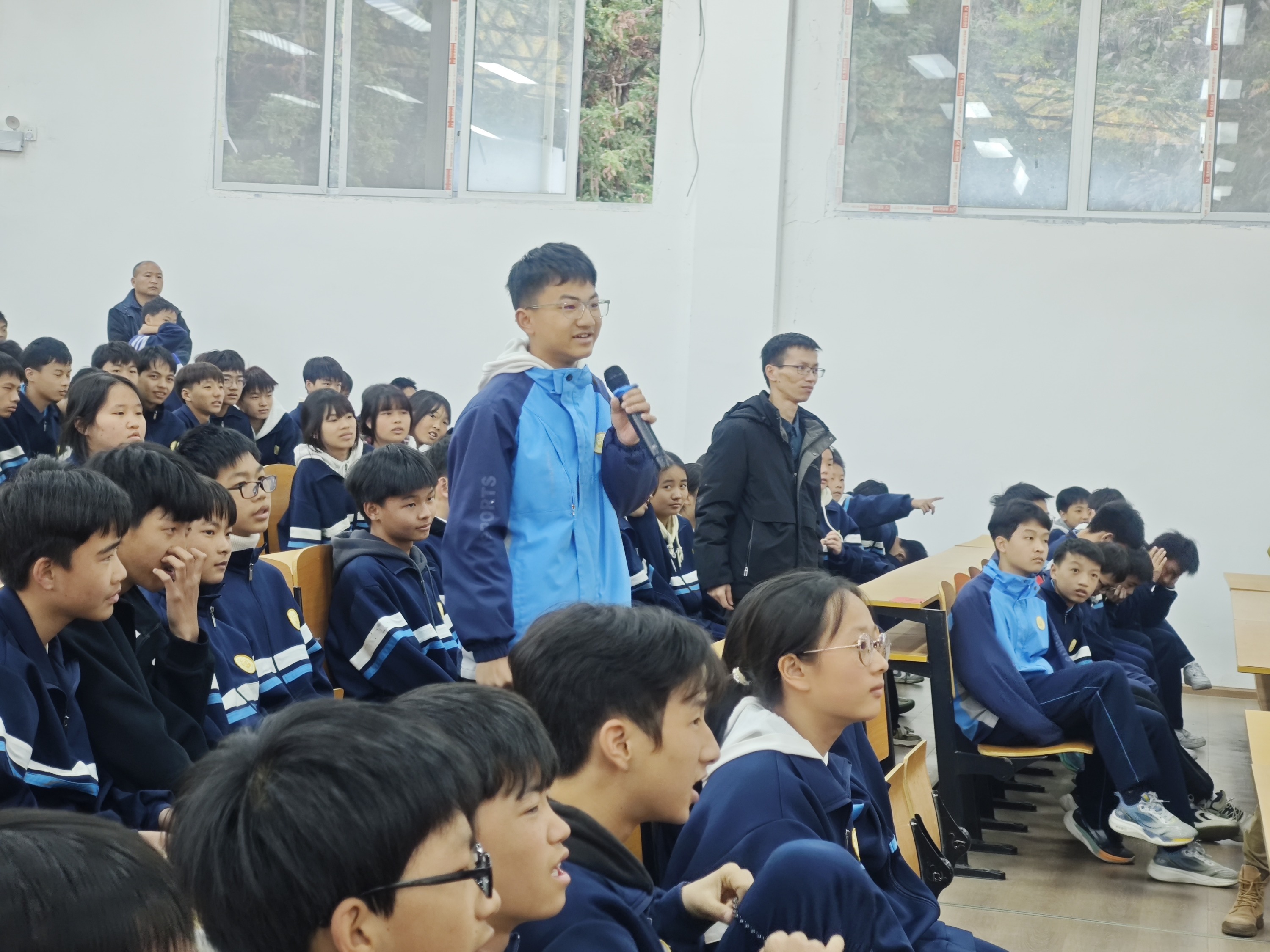 课堂上,黔东南州退役军人思想政治指导员、凯里市关心下一代工作委员会委员杨小勤作国防教育及红色故事主题宣讲,结合革命事迹阐释新时代青年的责任担当。活动特别设置“红色知识竞答环节”,对答正确的学生颁发纪念币,激发学生参与热情。随后,全体师生共同观看专题片《追思英烈 致敬英雄》,重温英雄事迹,感悟精神传承。