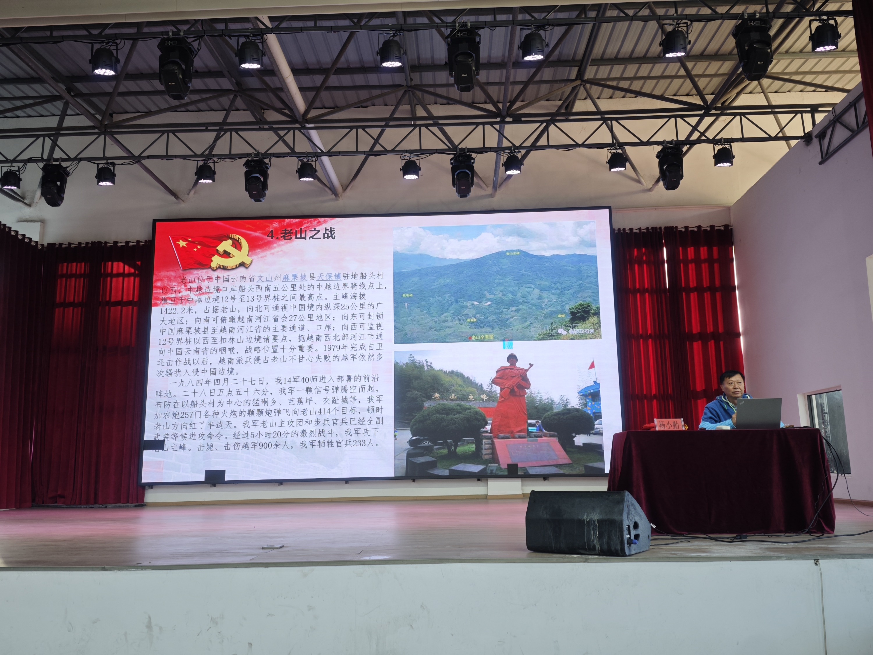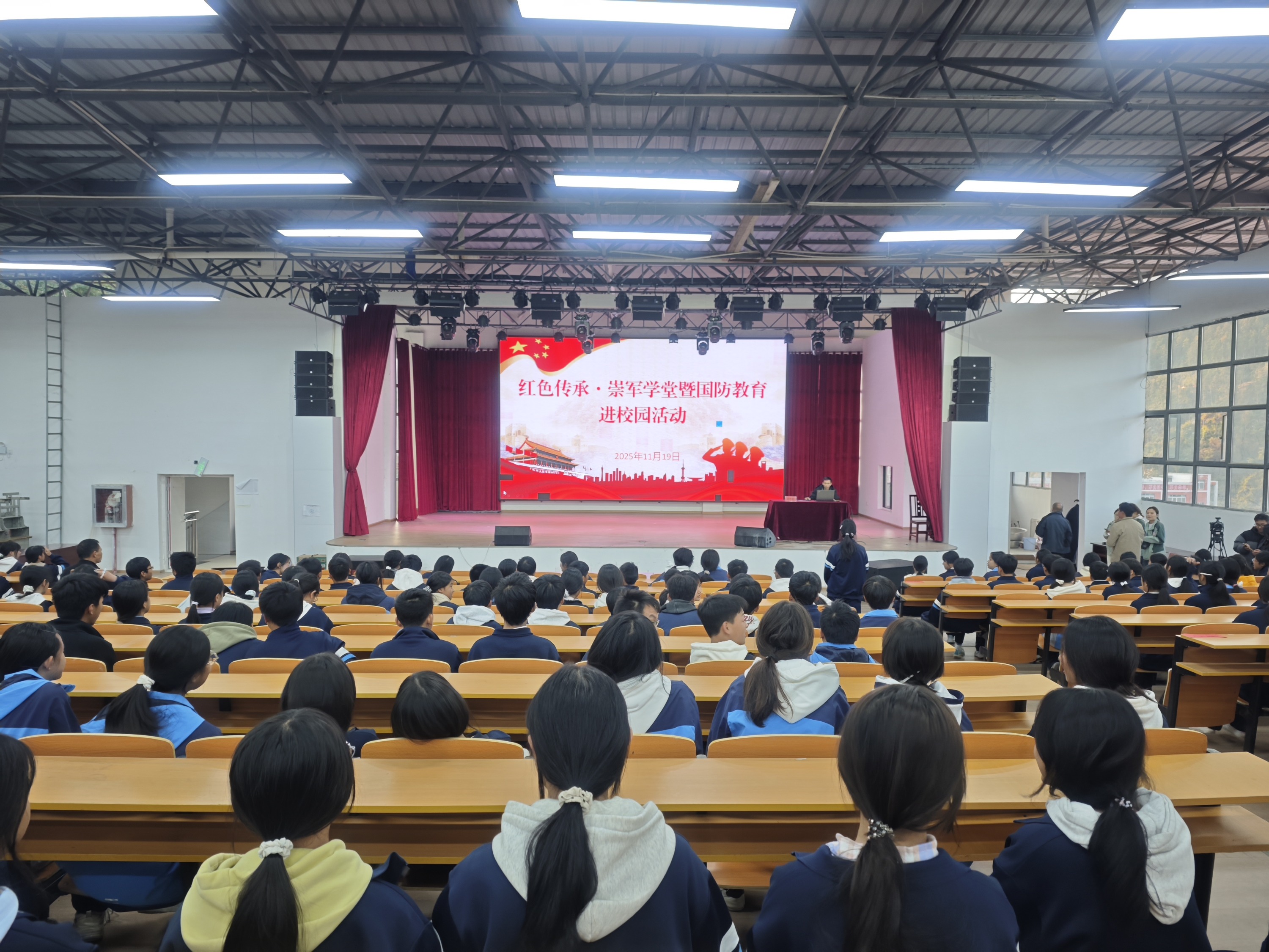 11月19日,锦屏县第四中学举办“红色传承·崇军学堂暨国防教育进校园”主题活动。活动以"赓续红色血脉·砥砺强国之志"为主题,通过专题宣讲、影像教学、互动实践等多元形式深化师生爱国主义教育。黔东南州退役军人事务局、锦屏县退役军人事务局、锦屏县第四中学等相关负责同志,部分师生代表、锦屏县退役军人及烈士家属代表共同参与活动。