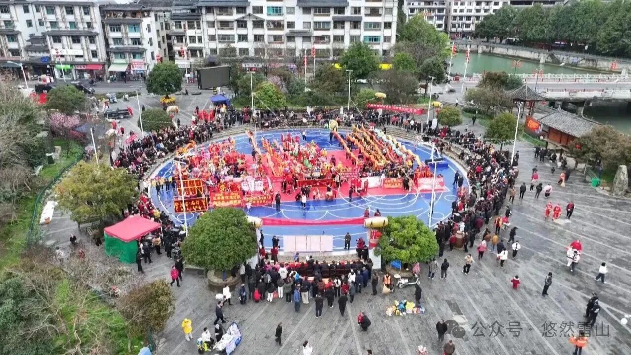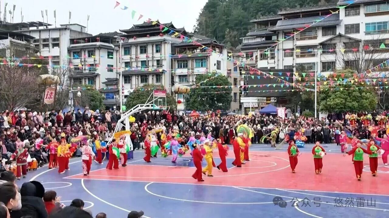 雷山县的元宵龙灯花灯争霸赛同样精彩纷呈。全县28支本地代表队与来自黔南都匀的舞狮队同台竞技,锣鼓铿锵,热闹非凡。彩龙昂首摆尾、盘旋游走,呈现追珠、翻腾等多样姿态。