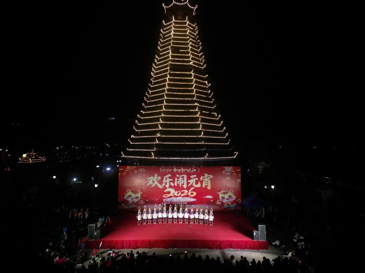 从江县则以文艺演出、侗歌演唱、芦笙舞表演,尽显侗族风情的婉约与豪迈。3月1日,夜幕降临,广场华灯初上,鼓楼广场元宵晚会如期登场。来自各个社区、村寨、学校的民间表演者轮番登台,献上唱歌、走秀、舞蹈及特色侗族大歌等精彩节目。悠扬的歌声饱含深情,时尚走秀、灵动舞姿展现青春活力,原汁原味的侗族大歌韵味悠长。市民围坐赏演,在喜庆氛围中度过温馨难忘的佳节。