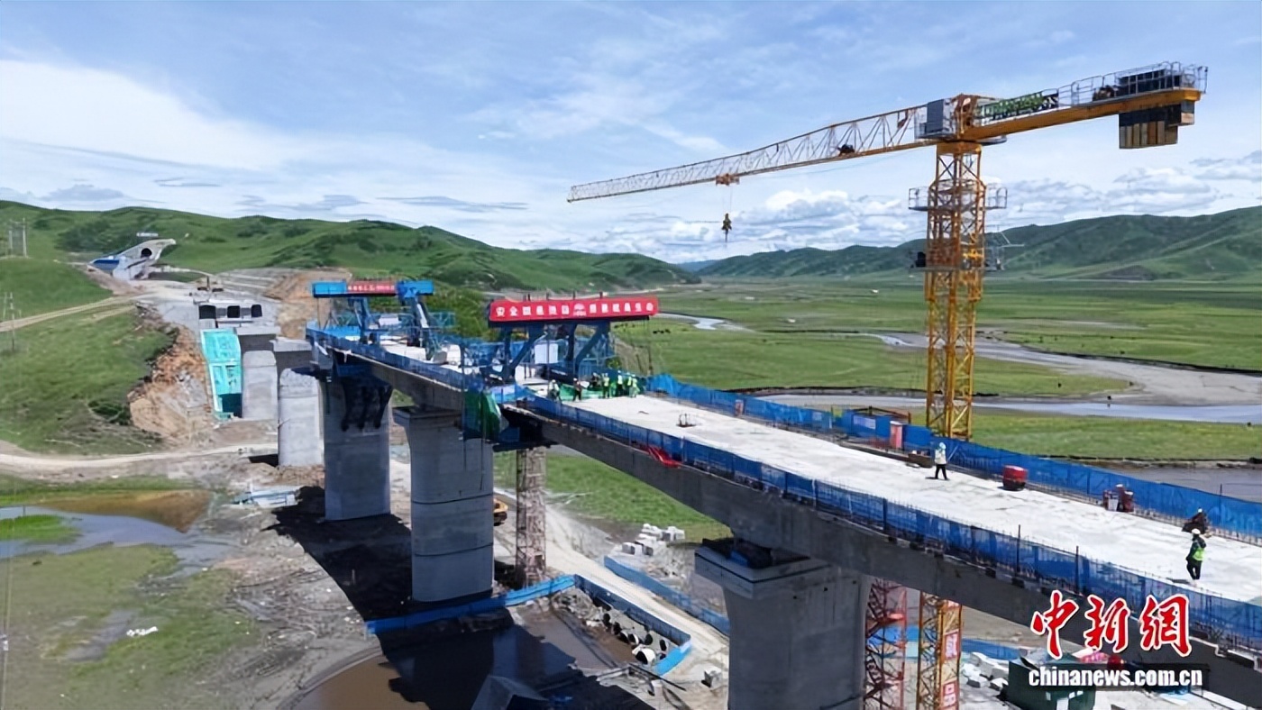 西成铁路红原跨G213特大桥连续梁合龙施工现场。成兰铁路公司供图
