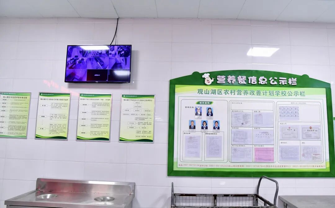 为筑牢食品安全防线,观山湖区教育局将监管链条延伸至每一个细节:结合本地实际,修订完善校园食品安全管理制度,涵盖食材采购验收、食品加工制作、食品留样、餐具消毒等各个环节;组织学校食品安全管理人员和从业人员开展多层次、多形式的食品安全知识培训;与区市场监管局建立联合执法检查机制,成立专项监督检查小组,采取定期全面检查、不定期抽查的方式强化校园食堂监管;通过委托第三方检测机构,随机对4家食材配送企业的原材料进行抽检或定检,从源头把控食材安全。“我们公司对食品安全的把控很严格。除了自己设有食品安全检测室,对每一批次进出产品进行检查外,还严控供应链管理,并在运输上实现全程冷链、全程监控。公司经手的所有食材从仓储、入库到配送,均能满足学生餐的食品安全要求。”贵州彩食鲜供应链发展有限公司营销总监黎开行说。学校层面也严格落实校园食堂标准化管理要求,确保规范运行。“我们学校对食材的储存、清洗加工、烹饪以及餐具的清洗等每个环节都有具体的规定,还有专人负责记录,做到了日管控、周排查和月调度。”金华小学副校长付琴说道,“学校食堂每周要进行一次大扫除,每天还安排一名在编老师对菜品进行验收,全力保障食堂干净卫生,食材新鲜安全。”