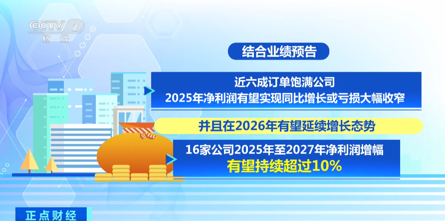 上市公司对于主动向市场传递经营信号的意愿越来越高。万得数据统计, 2025年有750余家上市公司主动披露订单动态,占比达13.75%。结合业绩预告,近六成订单饱满公司2025年净利润有望实现同比增长或亏损大幅收窄,并且在2026年有望延续增长态势。其中,16家公司2025年至2027年净利润增幅有望持续超过10%。
