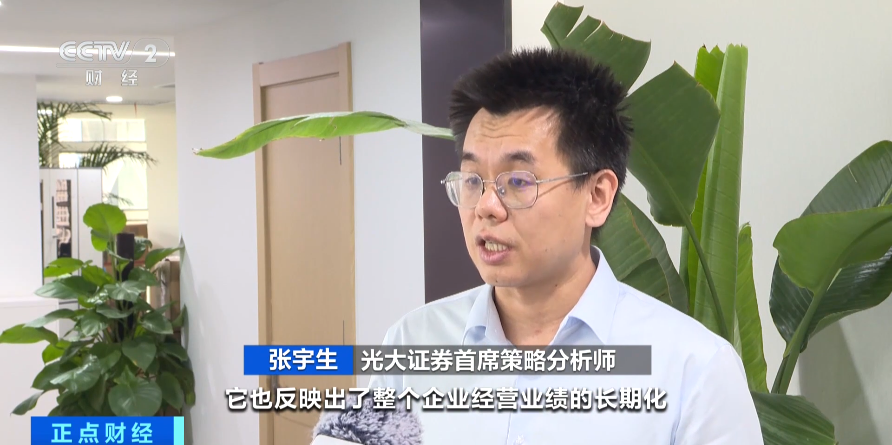 光大证券首席策略分析师 张宇生:非常重要的一点,它也反映出了整个企业经营业绩的长期化。从之前我们上市公司可能只能看到未来一个季度的情况,逐步发现我们可以看到未来一年甚至两年的情况。