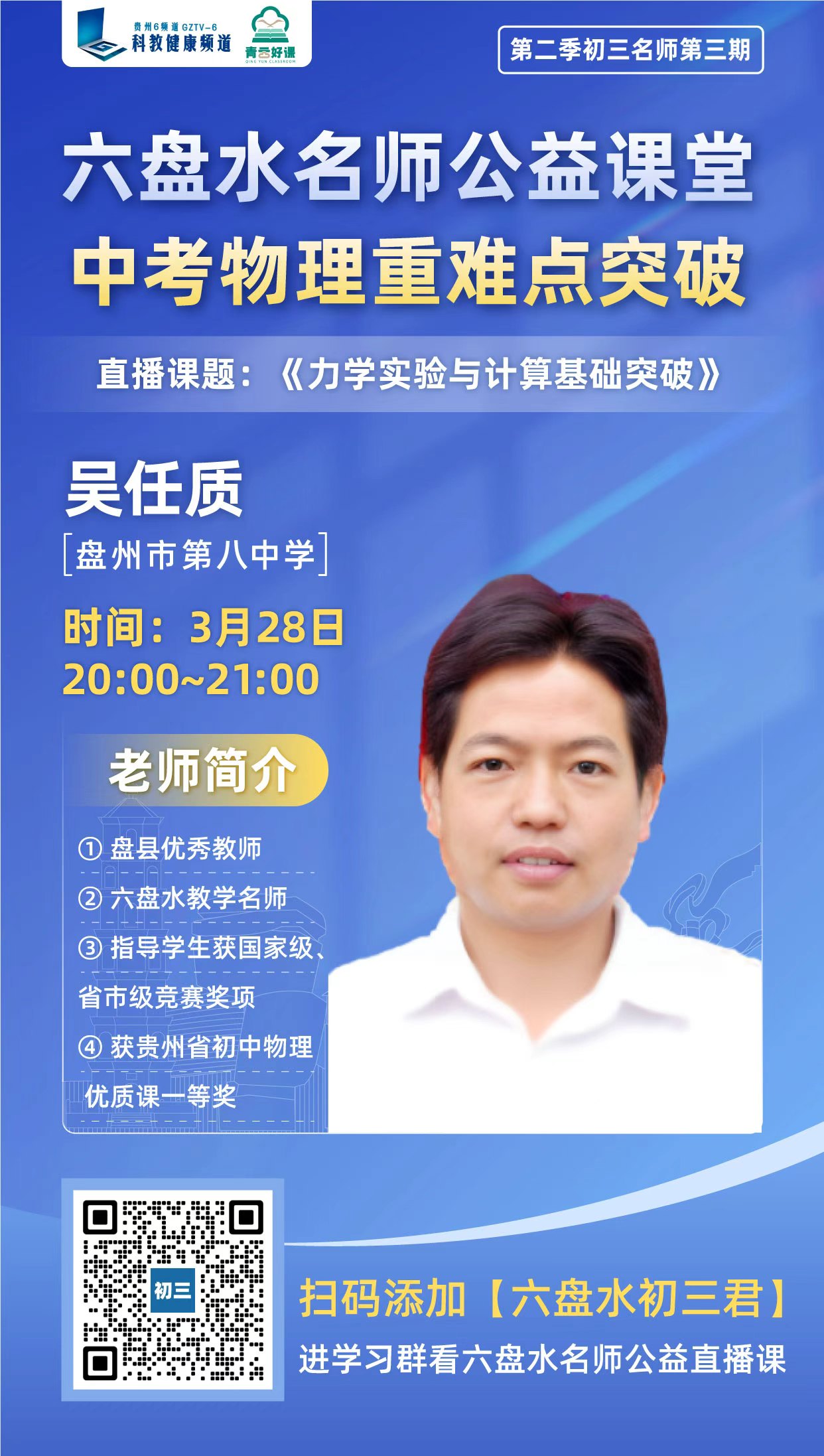 【初三家长必看】青云好课·六盘水名师公益直播课堂第二季第三期开播!助力孩子精准冲刺中考!