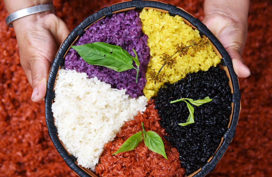当节日临近之时,远近的苗族村寨都会变得忙碌起来,各村寨的姊妹们都会制作黑、红、黄、蓝、白五色糯米饭。吃姊妹饭是姊妹节的重要礼仪事项,也是苗乡阿妹们向心爱之人表达情意的信物。