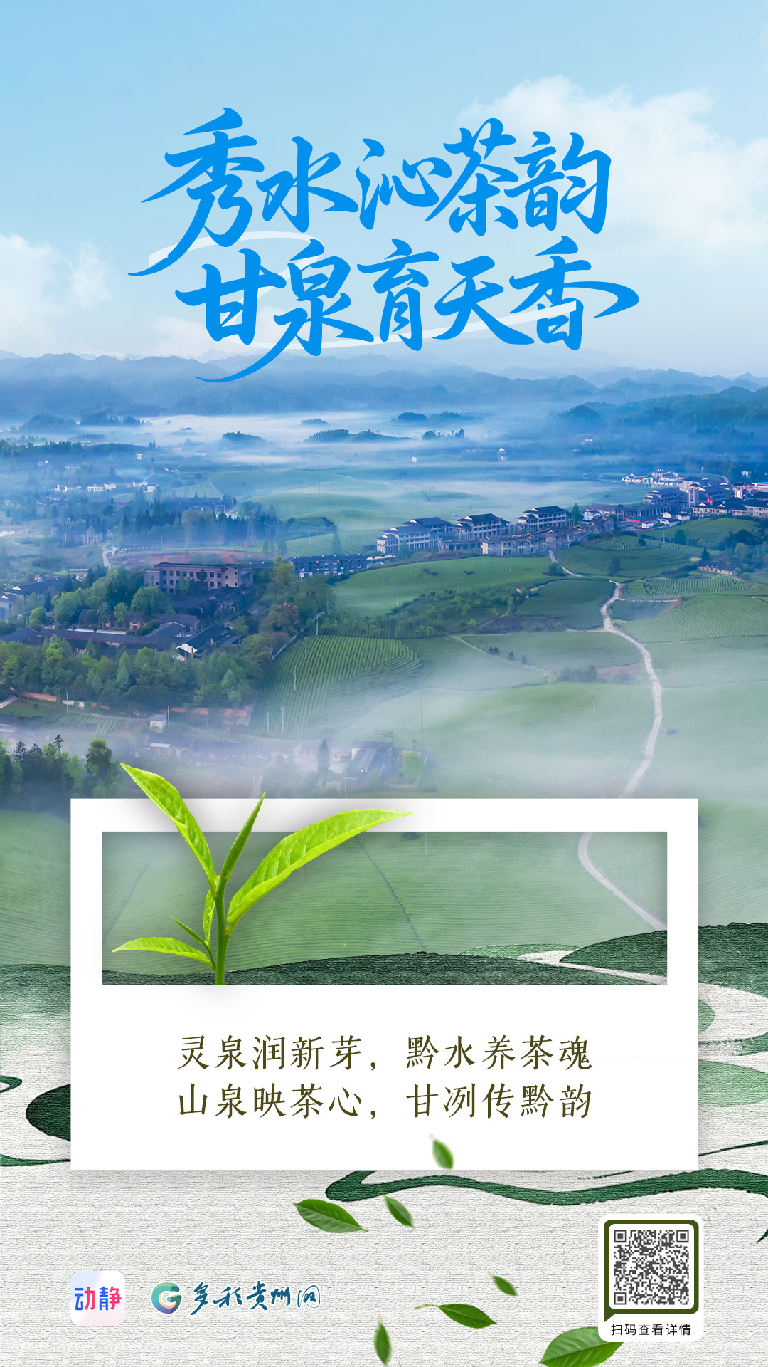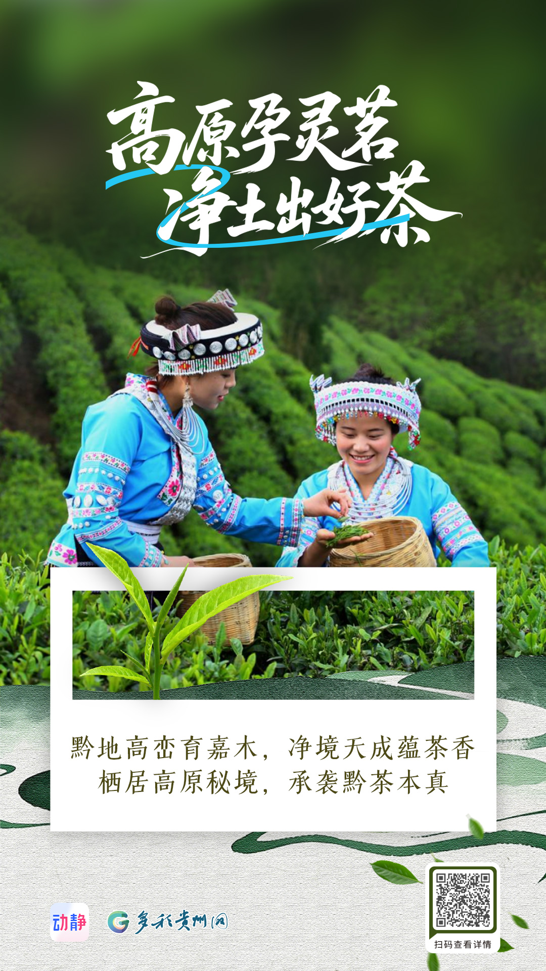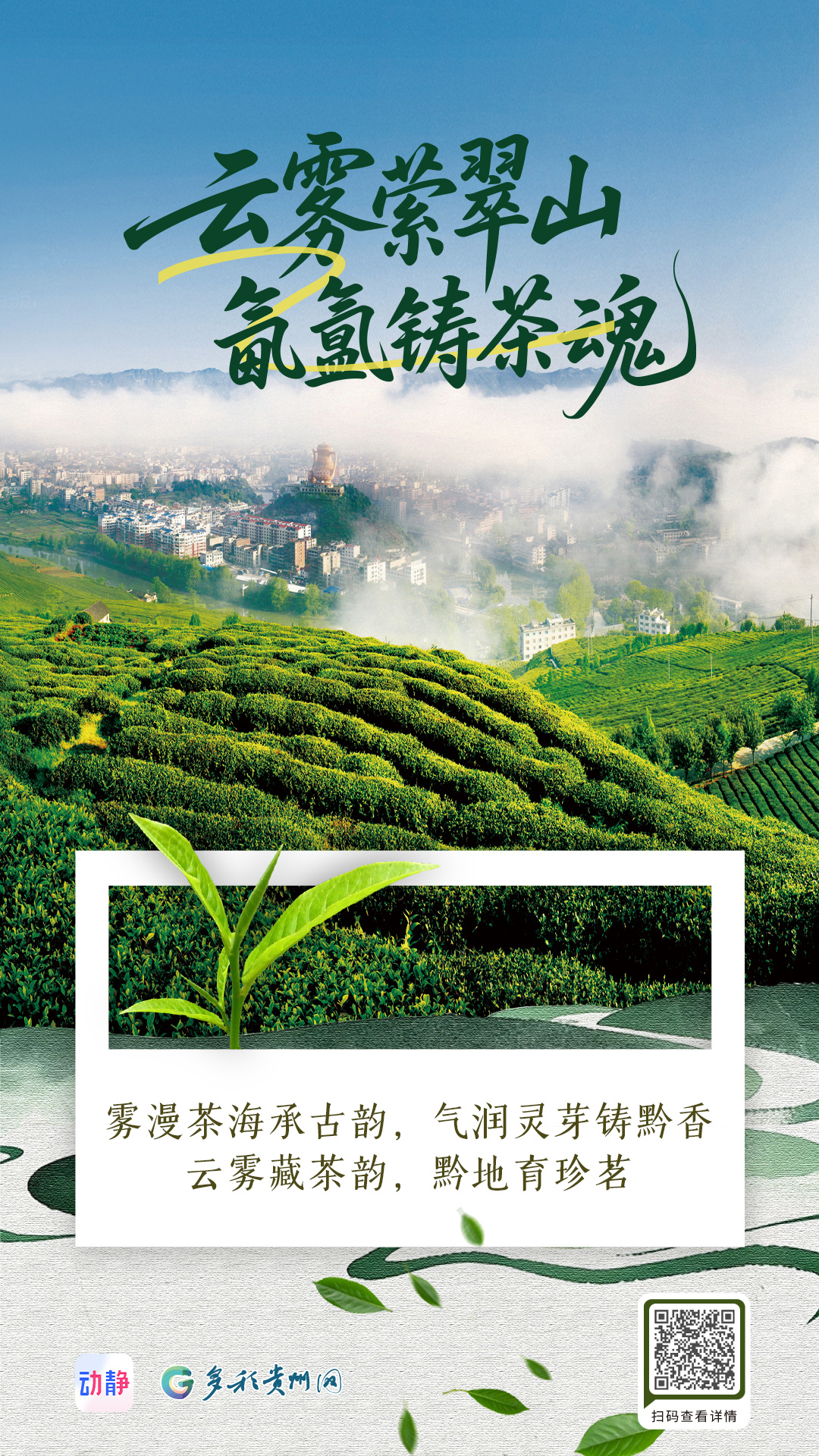 编者按:当春风唤醒黔山秀水,垄垄茶园长出新绿,指尖与叶尖的相逢,便谱写了这个季节最动人的旋律。动静-多彩贵州网特别推出《黔茶飘香》系列海报,邀您共赴一场茶香四溢的春日之约。系列海报将以视觉为语言,全景式呈现贵州茶产业如何将“绿水青山”转化为“金山银山”的生动实践,深入解读黔茶“干净、生态、多彩、富民”的独特价值密码。