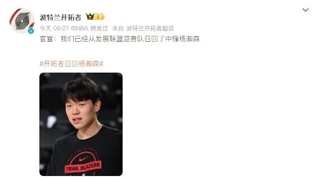 11月3日,NBA波特兰开拓者队官方宣布,已从下属发展联盟球队撕裂之城混音召回中国球员杨瀚森。明日,开拓者将对阵洛杉矶湖人队。