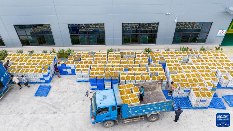 贵州山王果健康实业有限公司5G智慧工厂工人正在卸果。(受访者供图)