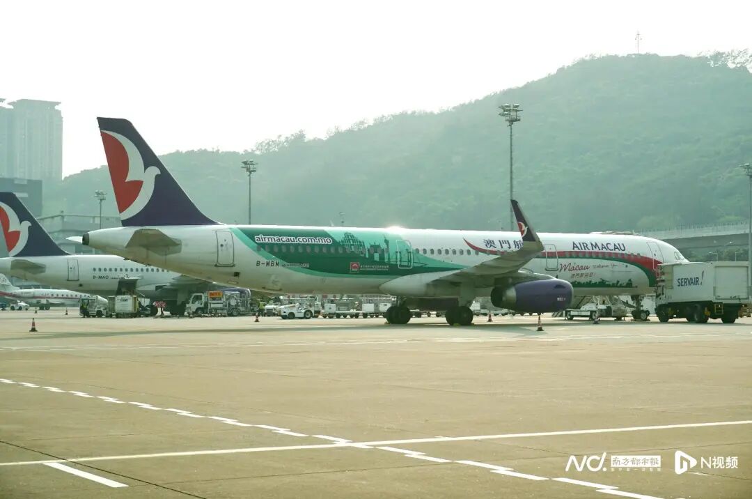 停泊在澳门国际机场的澳门航空机队(肖遥/摄)