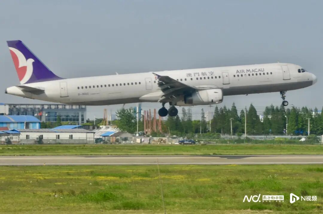 澳门航空的航线网络连接澳门与内地多个主要城市。图为一架澳门航空的空中客车A321客机即将降落在宁波栎社国际机场(肖遥/摄)
