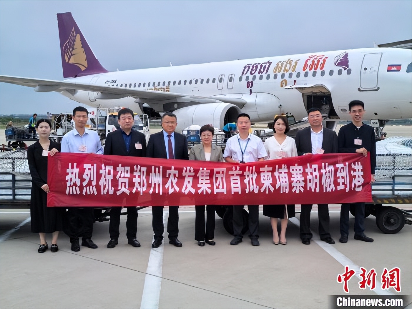 2024年9月15日,柬埔寨国家航空K6894航班抵达郑州新郑国际机场,承运了首批从柬埔寨进口到河南的优质胡椒。(受访者供图)