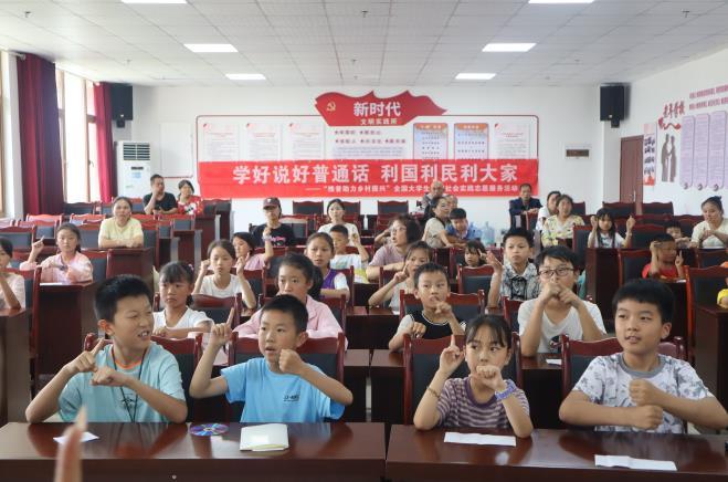 “请你来扮演一下猴王可以吗?”在甘河街道办事处的活动室里,志愿者手持彩色卡片引导着分成三支队伍的孩子们参与游戏。7月13日下午,“语润童心·言筑未来”主题教学在此拉开帷幕,50余名易地搬迁安置点青少年成为首批学员。 延续“基础筑基+趣味实践”的教学模式,志愿者们从破冰环节便融入普通话训练:“绕口令”游戏要求用标准发音衔接,“击鼓传花”让孩子们用普通话演绎趣味小故事,在笑声中打破表达胆怯。针对乡村青少年常见的“平翘舌不分”“前后鼻音混淆”问题,志愿者带领大家做“舌尖抵齿”“鼻音共鸣”等进阶口部操,配合《白石塔》绕口令强化训练。“以前孩子说‘老师’总念成‘老丝’,今天跟着练了半小时,居然能分清‘s’和‘sh’了!”旁观的家长王女士难掩惊喜。 课堂尾声的“故事拼图”环节更显巧思:志愿者将《猴吃西瓜》故事按角色分段,孩子们需用普通话讲述自己所扮演角色的故事并拼接完整。