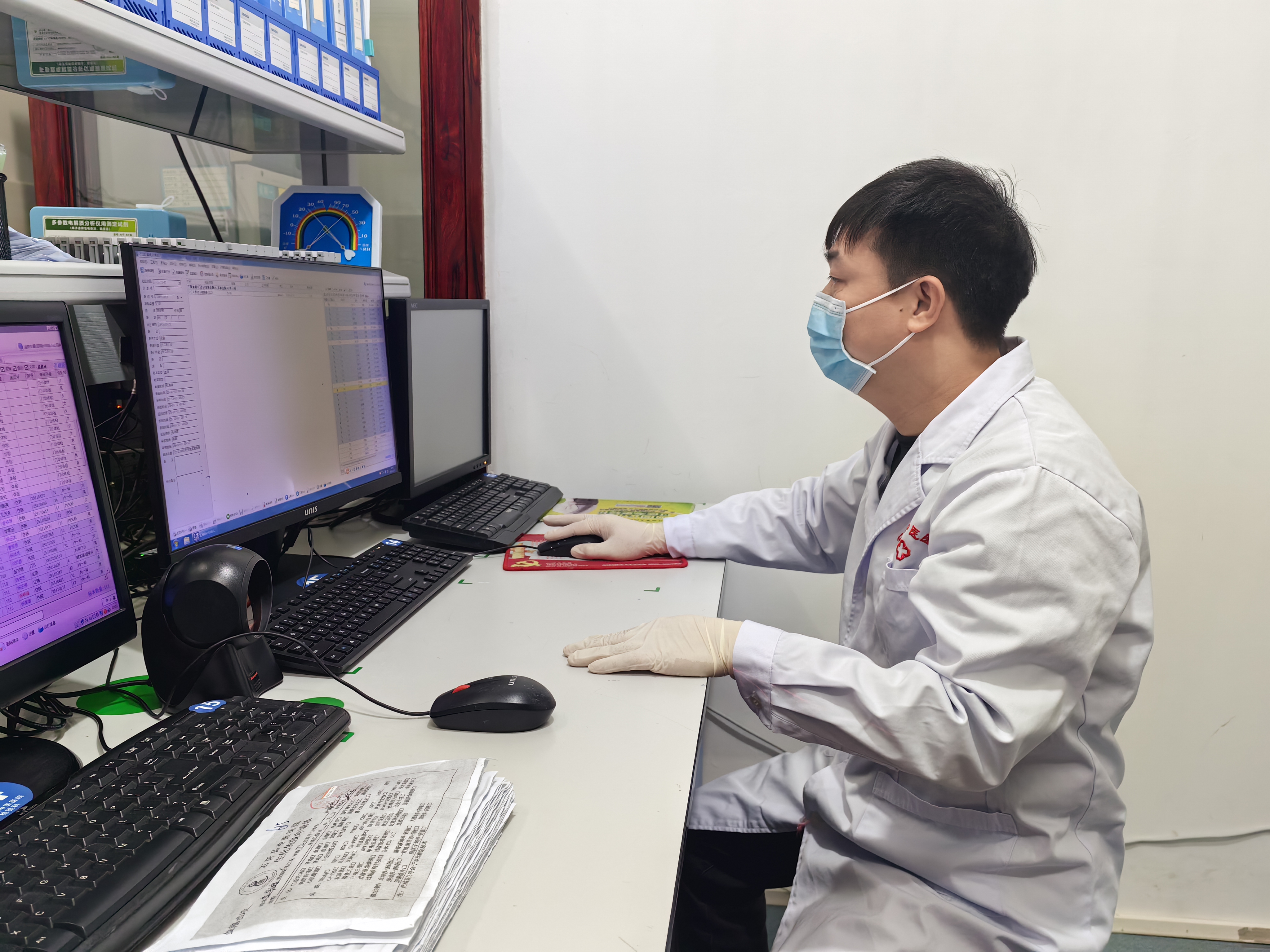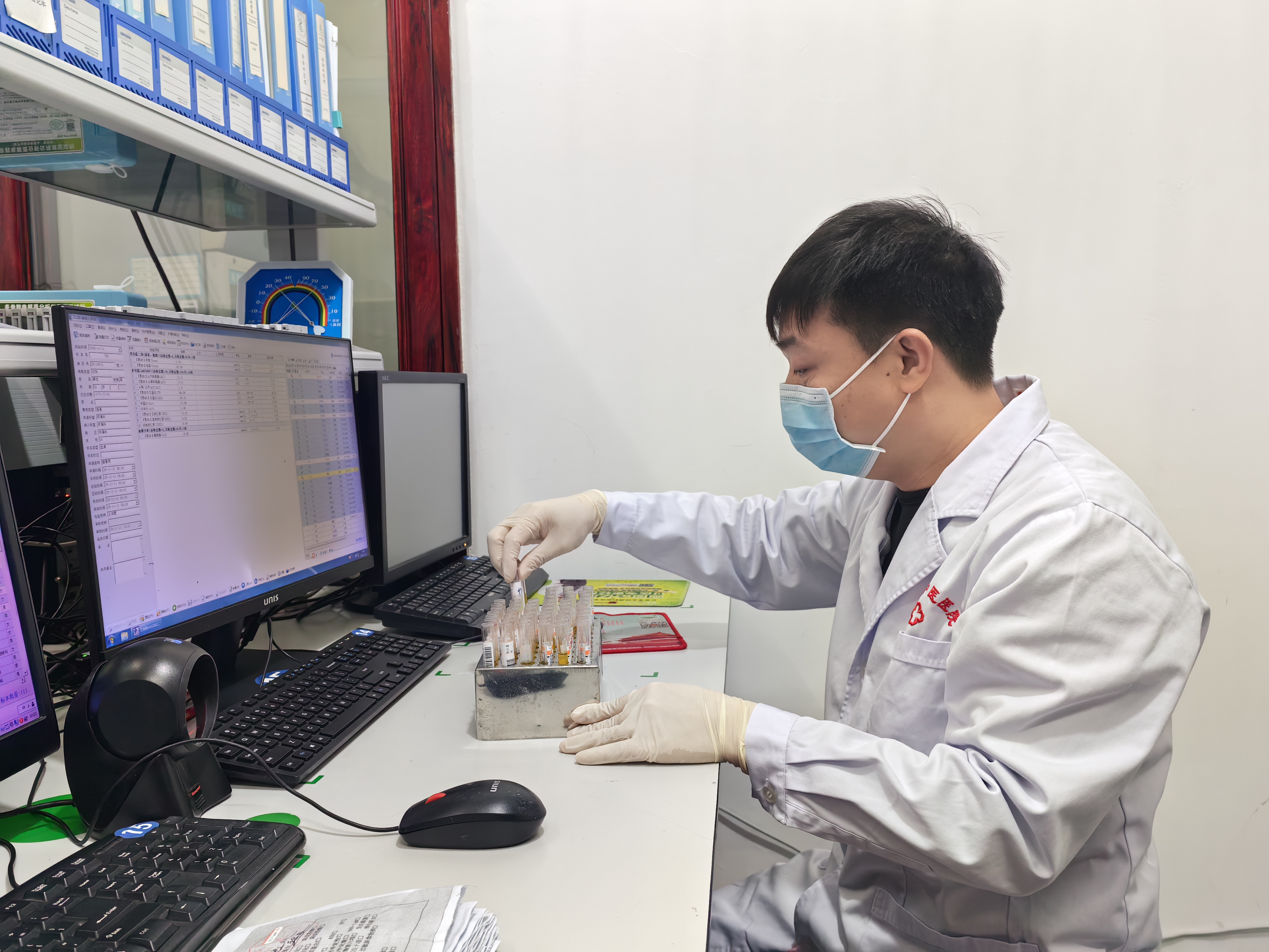 在石阡县中医医院检验科,东莞市万江医院派驻的帮扶专家陈剑武正将待检标本放入专业设备进行检测。随着扫描条码信息录入系统、细致审阅数据等流程的逐步完成,一份份精准的检验报告迅速生成,为患者的诊断和治疗提供了及时且可靠的依据。在工作间隙,陈剑武还为科室同事们详细讲解了标本采集规范和仪器操作技巧。并耐心解答各类疑问,帮助科室人员提升专业技能和业务水平,使检验工作更加精准高效。