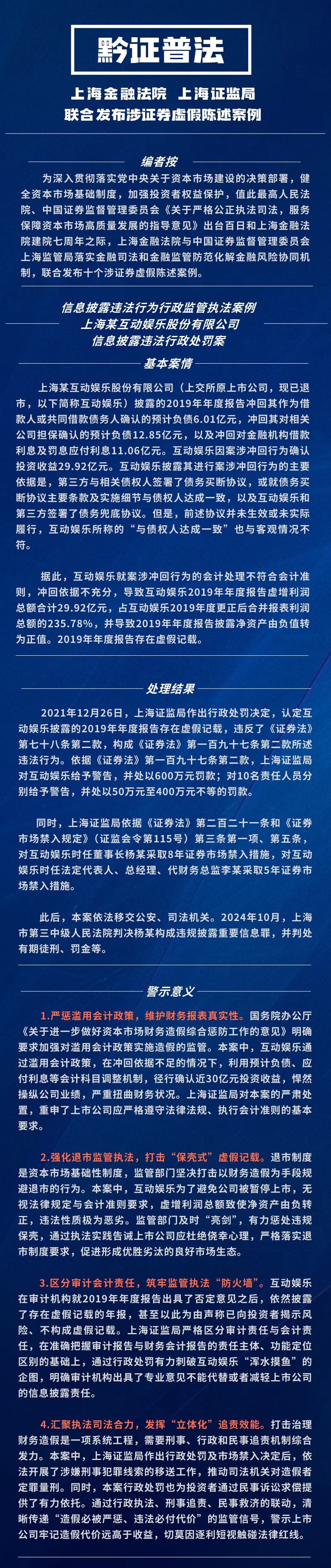 黔证普法丨上海金融法院、上海证监局联合发布涉证券虚假陈述案例