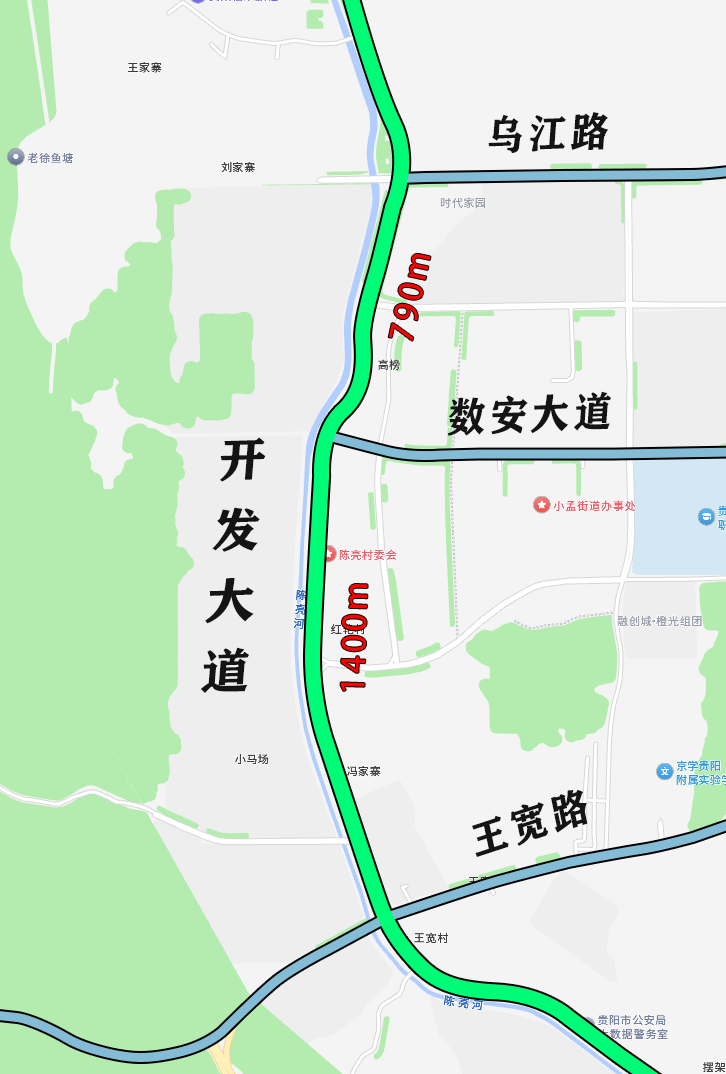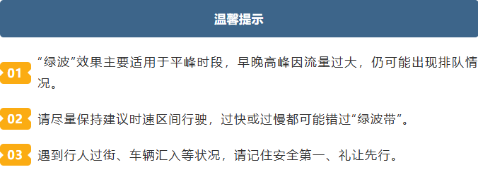 针对这一情况,贵阳交警经过调研与调试,在平峰时段(9:00-16:00)对王宽路至乌江路段实施“绿波”协调控制。简单来说,在此期间,只要驾驶员保持约50-60km/h的车速在路段匀速通行,即可享受“一路绿灯”的顺畅体验。