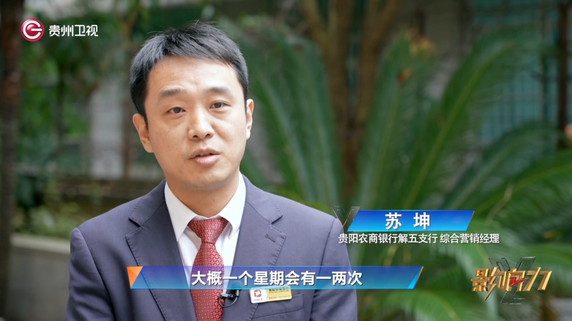 苏坤 贵阳农商银行解五支行综合营销经理:“还是比较频繁的,大概一个星期的话会有一两次,我们需要上门服务。累并幸福着,虽然自己可能体力上会有一点累,但是当我们来到他的身边,帮他解决这些问题的时候,我觉得自己还是有一定的人生价值或者意义在里面。”