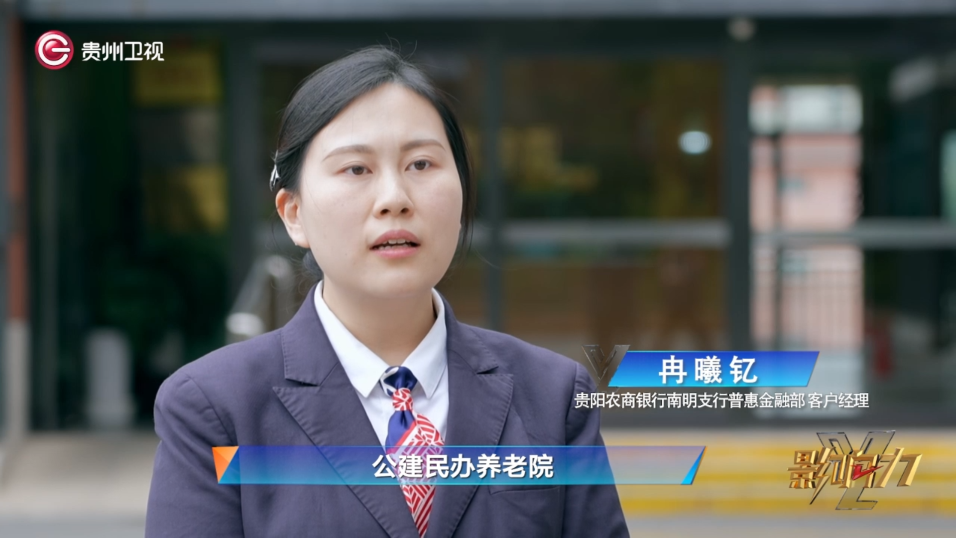 冉曦钇 贵阳农商银行南明支行普惠金融部客户经理:“根据我们国家普惠金融的一个要求,我们行正好推出了适老化金融的一个服务。2021底,我们在南明区这边进行摸排,知道了这边是一个新建的公建民办养老院,然后我们行就主动和他们联系上了。