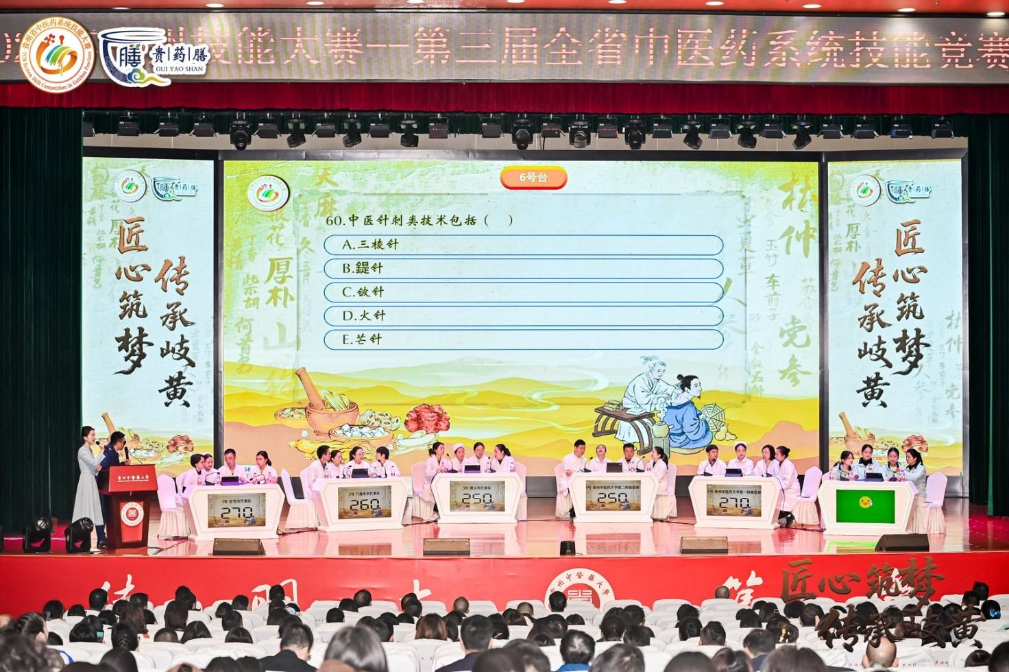10月23日的团体赛同样精彩纷呈。团体赛环节设置必答题、抢答题、风险题三重关卡,从基础理论到实战应用,全方位考验队伍协作与专业素养——贵州中医药大学第二附属医院代表队、遵义市代表队、贵州中医药大学第一附属医院代表队、毕节市代表队、六盘水市代表队、广东省中医院贵州医院代表队共6支顶尖队伍过关斩将,在风险题环节的“分值博弈”与抢答题环节的“毫秒竞速”中,展现出扎实的专业功底与过硬的心理素质。
