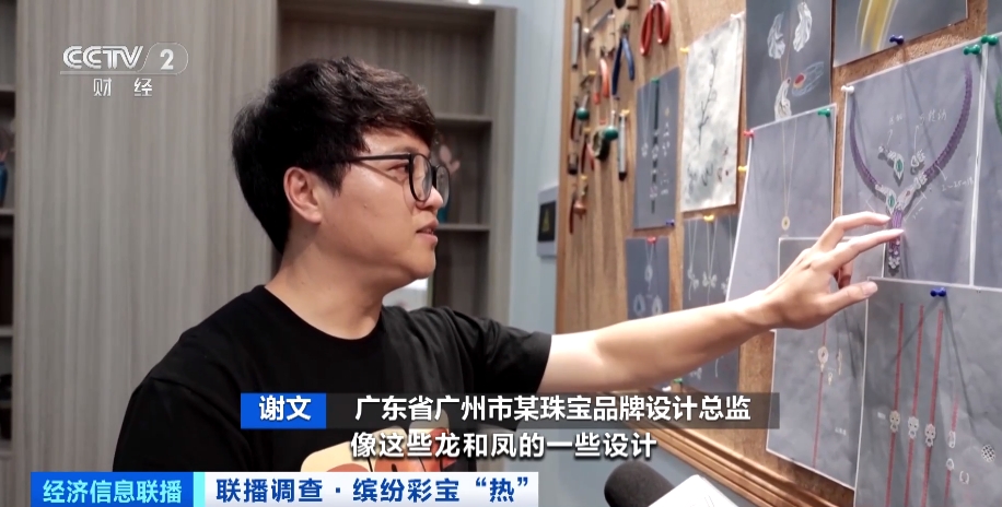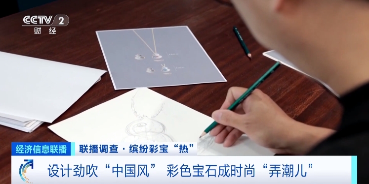 谢文从事彩宝设计工作已经15年了,他告诉记者,随着消费群体风格的变迁,他的设计思路也在不断创新。今年以来,他设计的彩宝大都是具有“中国风”和“国潮元素”的款式。