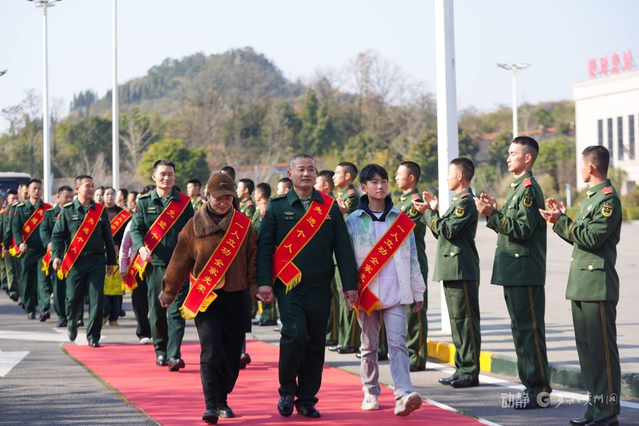 同时,武警贵州总队各支队高度重视官兵家庭关怀,积极搭建“军营-家庭”连心桥,切实把组织的温暖延伸至每一名官兵家庭。武警黔西南支队通过电话问候、视频连线、实地走访等多种形式,及时将官兵成长进步、立功受奖的“成绩单”传递给家属,节日期间开展走访慰问,邀请军属参加部队颁奖典礼、晋升军衔仪式,让家属近距离感受军营生活、见证军人荣光;新兵团干部骨干与新兵家属“云端”互动,实时通报新兵成长点滴,让家属放心、让新兵安心,凝聚起军营与家庭共育共管的强大合力。