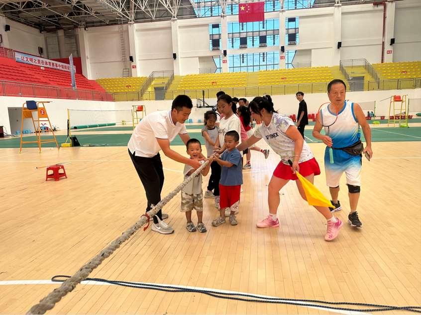 赛事聚焦“全民参与、趣味互动”的主题,个人项目设置投篮、足球射门、套圈、羽毛球四大类别,兼顾竞技性与娱乐性。家庭项目同样精彩纷呈,拔河、夹乒乓球接力、亲子跳绳三大项目成为家庭协作的“试金石”。赛场上,选手们热情高涨。个人项目中,参赛者全力以赴,向着“更快、更准、更强”的目标冲刺;家庭项目里,家庭成员互帮互助,用默契与坚持书写团队精神。赛场下,观众们热情不减,加油声、掌声持续不断。邻里间的距离在共同观赛、呐喊助威中逐渐拉近,整个赛事现场充满活力与温情。