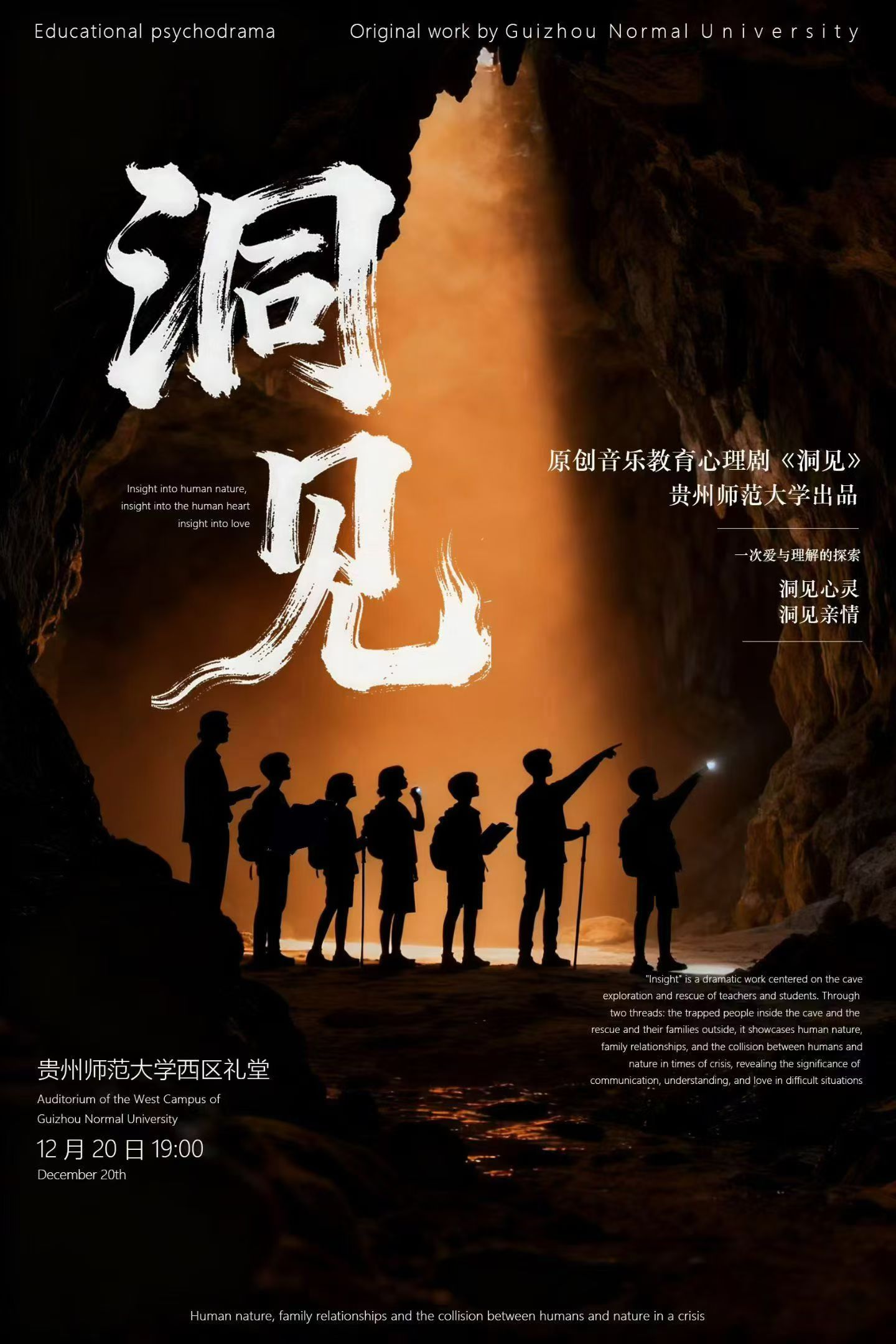 “大地风采·黔声贵韵”2025多彩贵州文化艺术节文化精品展演剧目、贵州师范大学音乐学院主创的原创音乐教育心理剧《洞见》近日在贵州师范大学(西区)礼堂成功上演。该剧通过戏剧艺术关注青少年心灵成长,搭建家校社协同育人的桥梁,让孩子的内心被聆听,让家长的关爱被觉察。