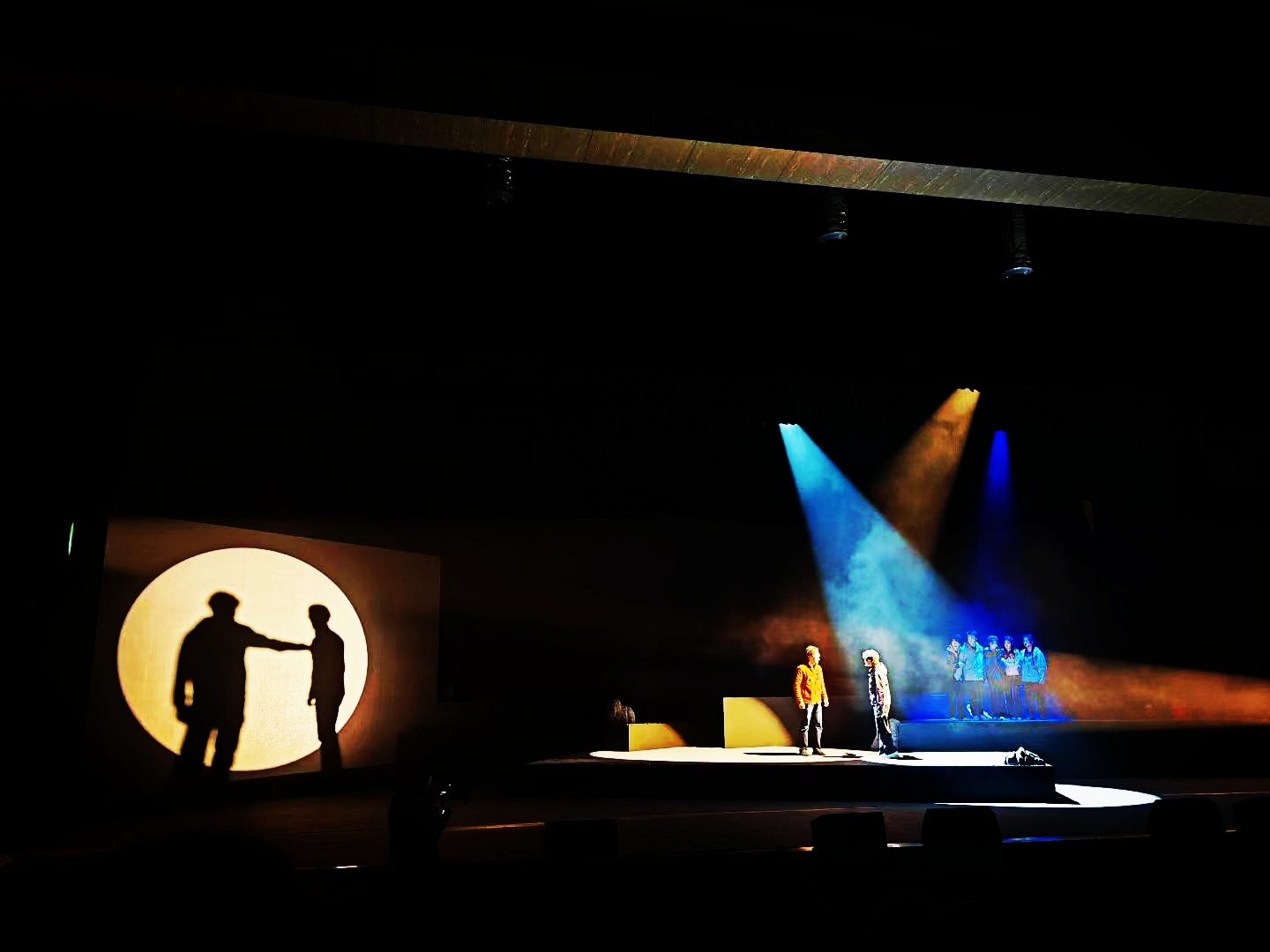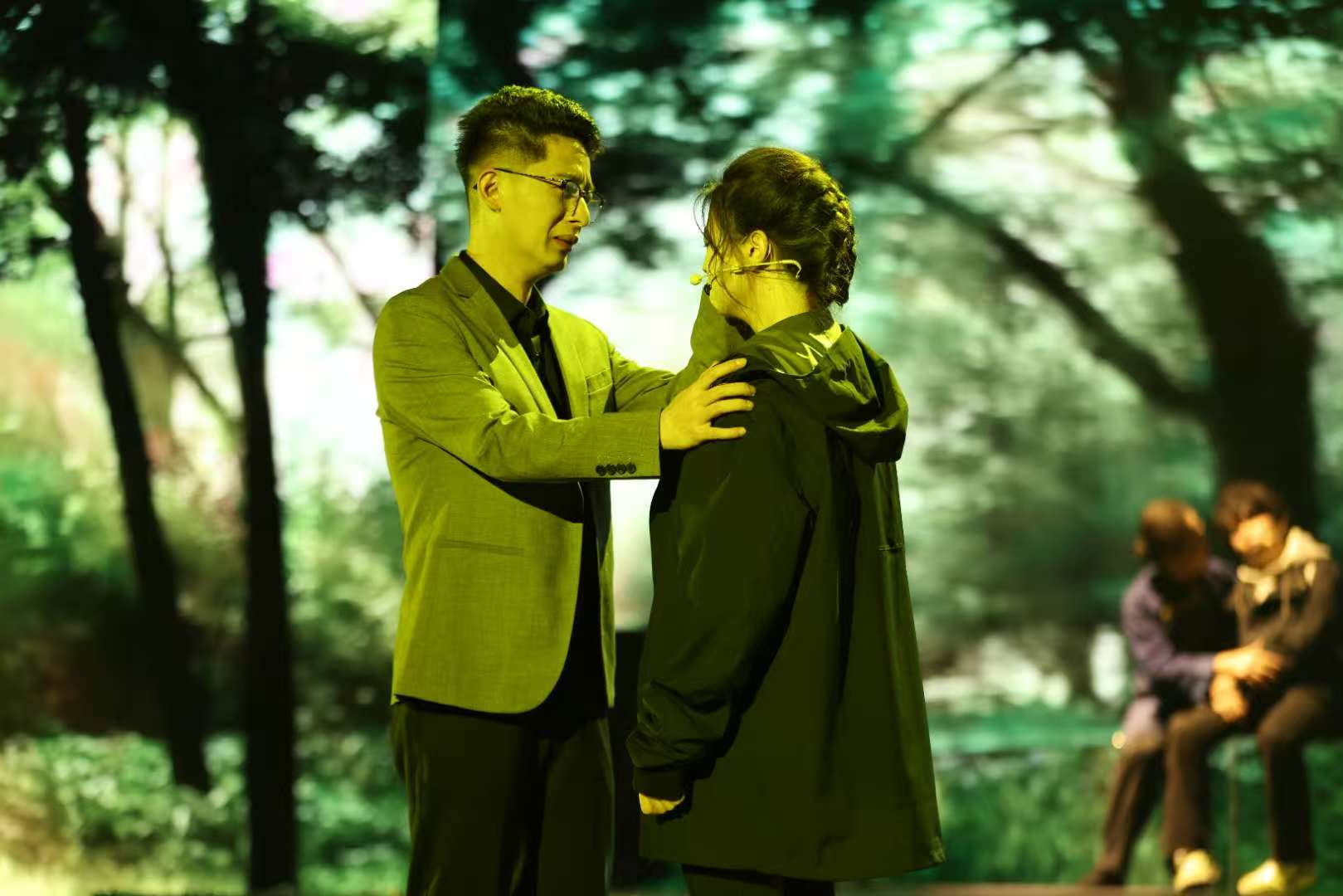 《洞见》通过音乐教育心理剧的形式,将师生因山洪被困溶洞的极端故事,锤炼成一面映照现实的多棱镜。舞台上,“洞内”人物在生死边缘的情感爆发与“洞外”家庭焦灼等待中的反思忏悔,双线交织,层层推进。演员们极具张力的表演,将优等生光环下的压抑、亲子隔阂中的委屈、懂事背后的牺牲等复杂心理刻画得入木三分。当剧中父亲面对儿子积压多年的控诉终于崩溃忏悔时,当孩子们听到父母透过生命探测孔传来的真情呼喊时,不少观众潸然泪下。演出不仅呈现了紧张的情节,更完成了一次成功的集体情感疏导,实现了戏剧“疗愈”的社会功能。