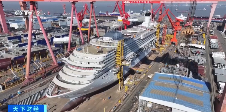 在上海中船集团外高桥造船的2号船坞内,国产第二艘大型邮轮“爱达·花城号”工程总进度超91%,与首艘国产大型邮轮相比,建造周期缩短了近8个月。