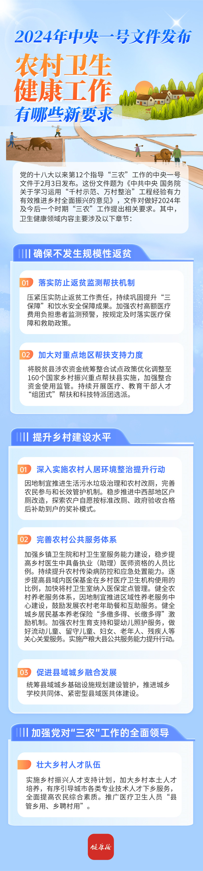 动静健康 | 2024年中央一号文件中,农村卫生健康工作有哪些新要求?一图读懂→