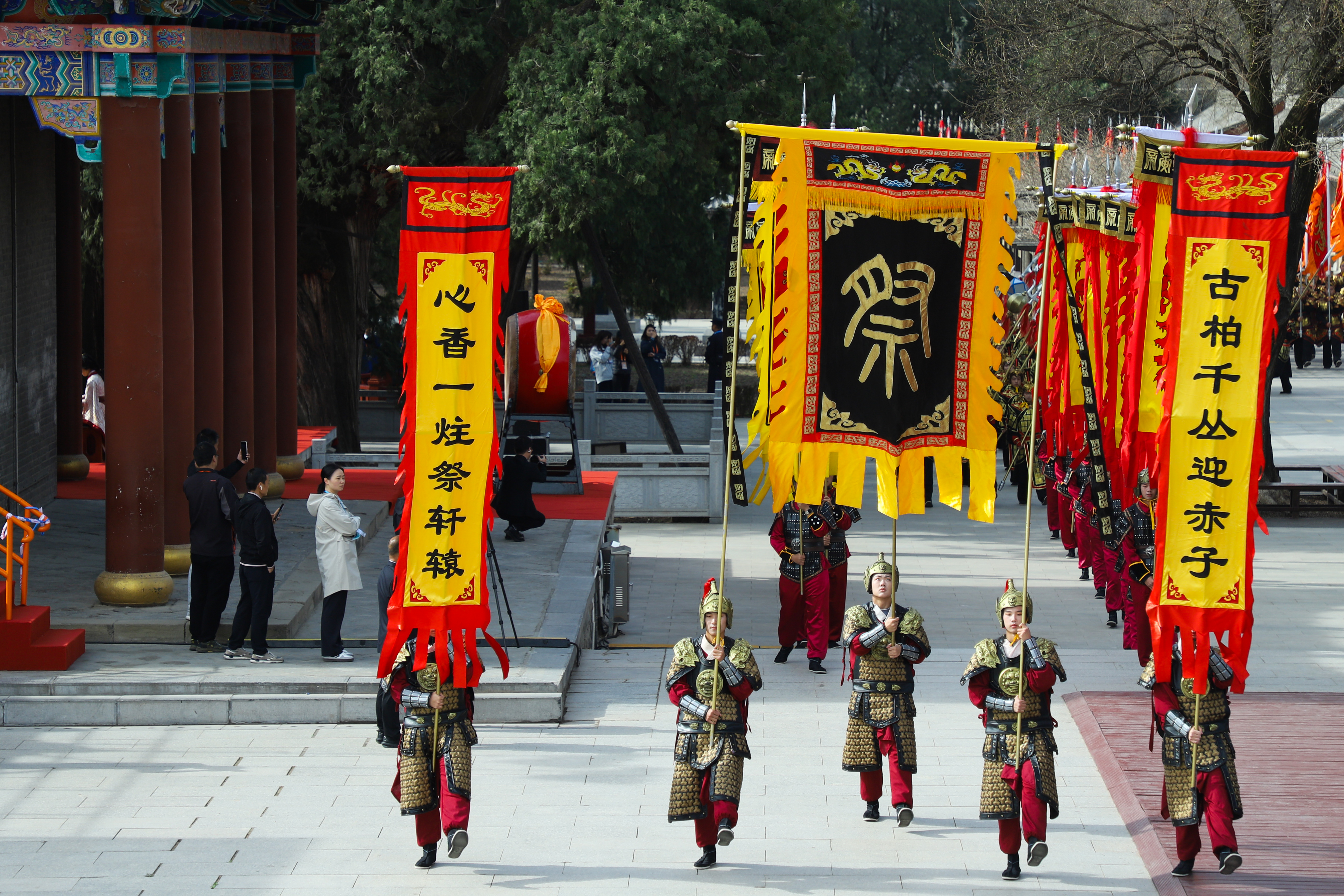 典礼严格遵循古礼与现代公祭规范,依次进行了击鼓鸣钟、唱《黄帝颂》、敬献花篮、恭读祭文、行三鞠躬礼、乐舞告祭、龙飞中华、瞻仰轩辕殿、种植桥山柏等九项仪程。现场气氛恢弘肃穆,祥和庄严。