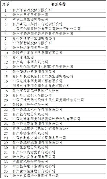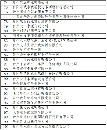 2025贵州企业100强名单(综合)