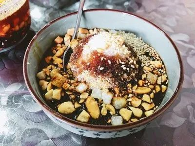 糕粑稀饭作为青岩古镇特色小吃之一,已有上百年历史。糕粑稀饭制作精细,以藕粉打底,大米与糯米混合蒸熟的糕粑软糯可口。再加上瓜子、芝麻、花生仁、蜜饯等丰富配料,最后淋上古镇特制的玫瑰酱,香气四溢,一口下去驱散寒意,成为最温暖的慰藉。