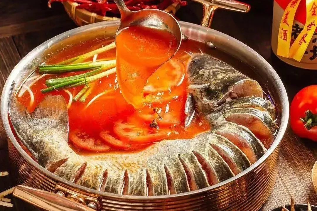 在贵州,有这样的谚语:“三天不吃酸,走路打蹿蹿”。酸汤鱼属于黔东南州特色菜,其鱼多选用当地出产的稻花鲤或鲶鱼、草鱼,酸汤最佳制法是以米汤自然发酵为汤底,配以木姜子、腌制西红柿酱、糟辣椒等多种佐料熬煮而成,肉质鲜美、酸辣可口。在这个季节吃上一锅红彤彤、咕嘟嘟冒泡的酸汤鱼火锅,瞬间就能暖意融融。
