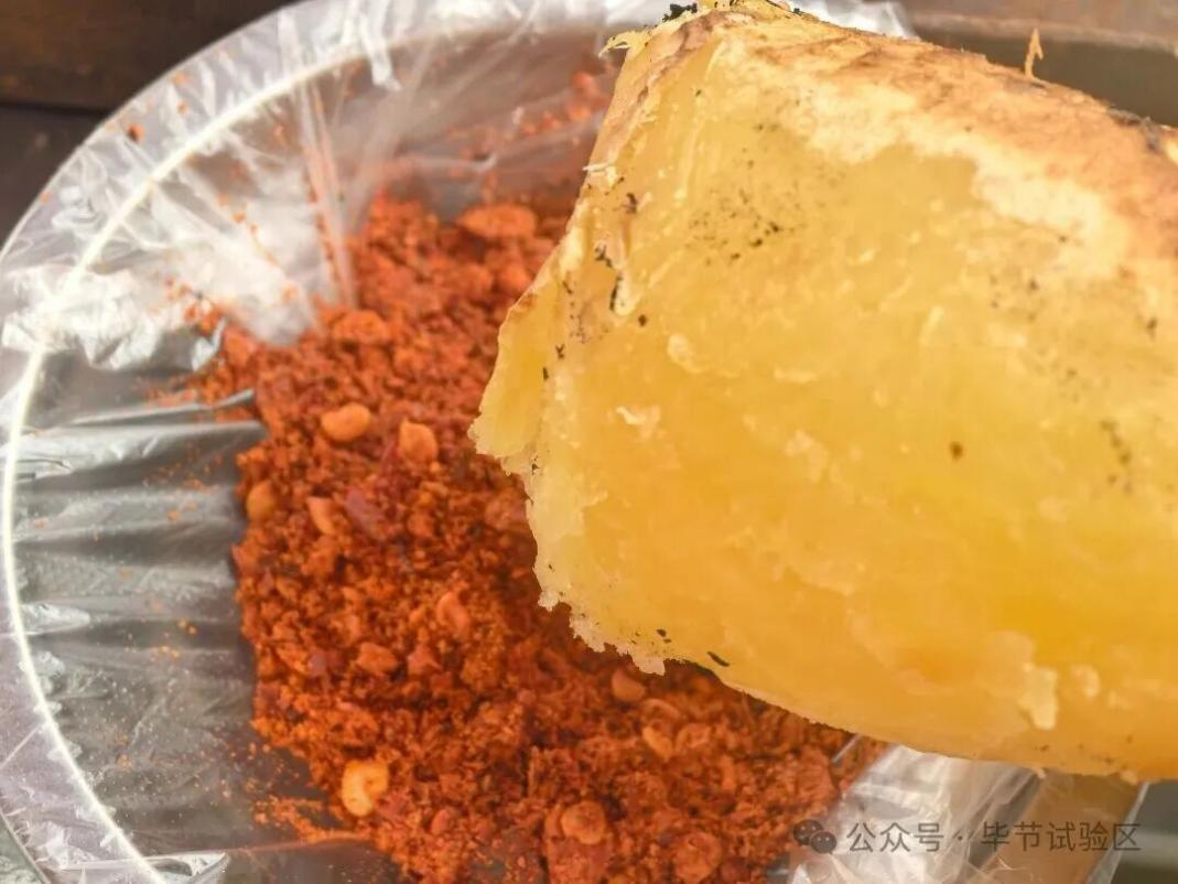 烤洋芋绝对是贵州的硬核温暖,一个大炉子把洋芋烤得外皮焦脆,内里粉糯对半切开,撒上辣椒面、折耳根、小葱……一口下去碳水的满足感和调料的香辣,瞬间引爆味蕾,扎实又管饱。