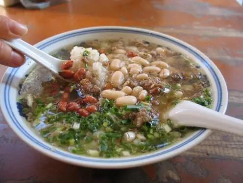兴义三合汤用糯米、白云豆、猪脚(或排骨)三种主料烹制而成,其入口鲜香,风味独特,故名“三合汤”。糯米吸饱了浓白的汤汁,胡椒的辛辣感顺着喉咙往下走,喝一口汤额头就微微冒热汗,湿冷感瞬间消散,是很多贵州人的冬日的驱寒秘方。