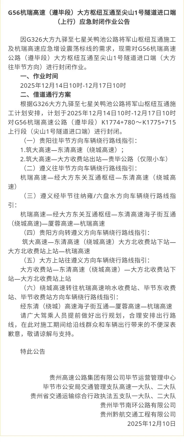 贵州交通广播、毕节交警 | 2025-12-14 09:33